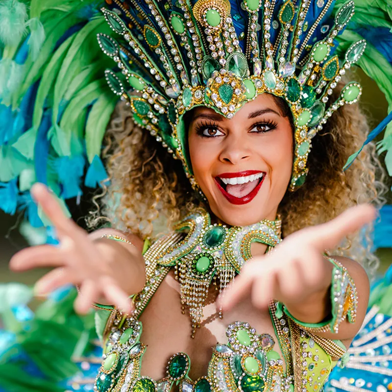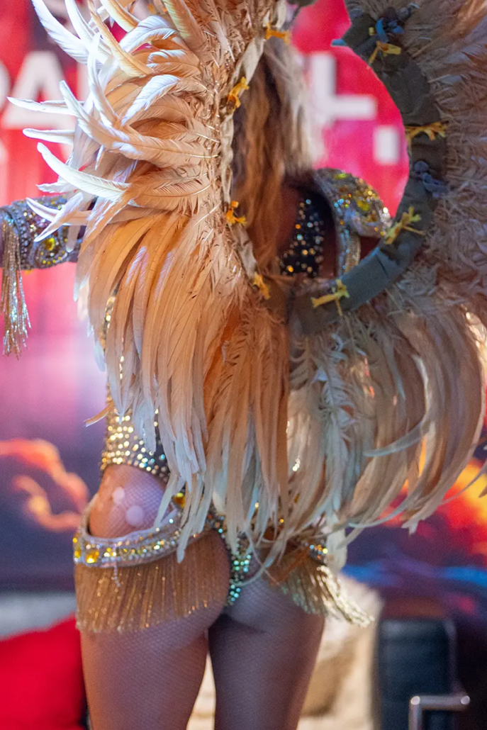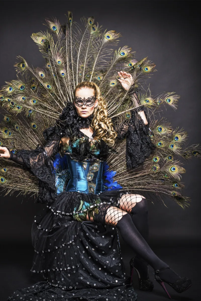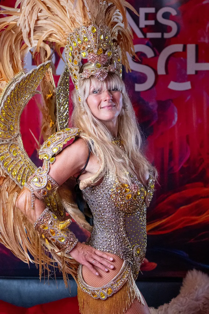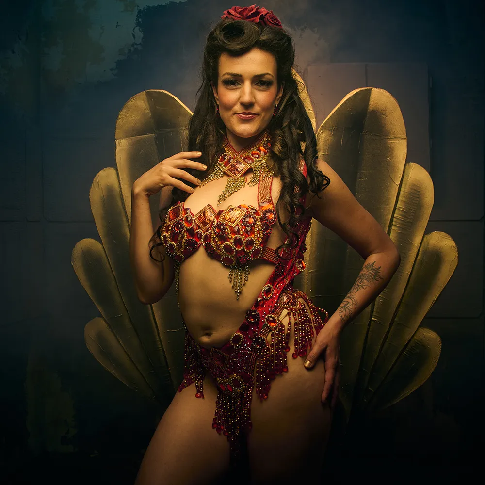 In meinen Kostümen und Shows lasse ich meine Liebe zu antiker griechischer Mythologie, den glitzernden 20er Jahren oder geheimnisvoller Erotik lebendig werden. Ob Comedy Burlesque, Feuershows oder Samba-Feuerwerke – jede Performance ist ein sinnlicher Rausch für die Sinne.